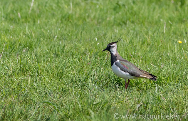 Ook kieviten waren er volop en aan hun gedrag te zien waren er ook jonkies. In het hogere gras zie je ze eigenlijk niet, maar op een iets meer open terrein liepen jonge kievitjes. Onvoorstelbaar dat ze zodra ze uit het ei zijn gekomen hun eigen kostje al bij elkaar moeten scharrelen. Pa en ma kievit zouden ook helemaal geen tijd hebben om ze te voeren, ook bij hen gaat alle aandacht uit naar het bewaken van de jongen door met hand en tand hun gebied tegen gevaar te verdedigen.
